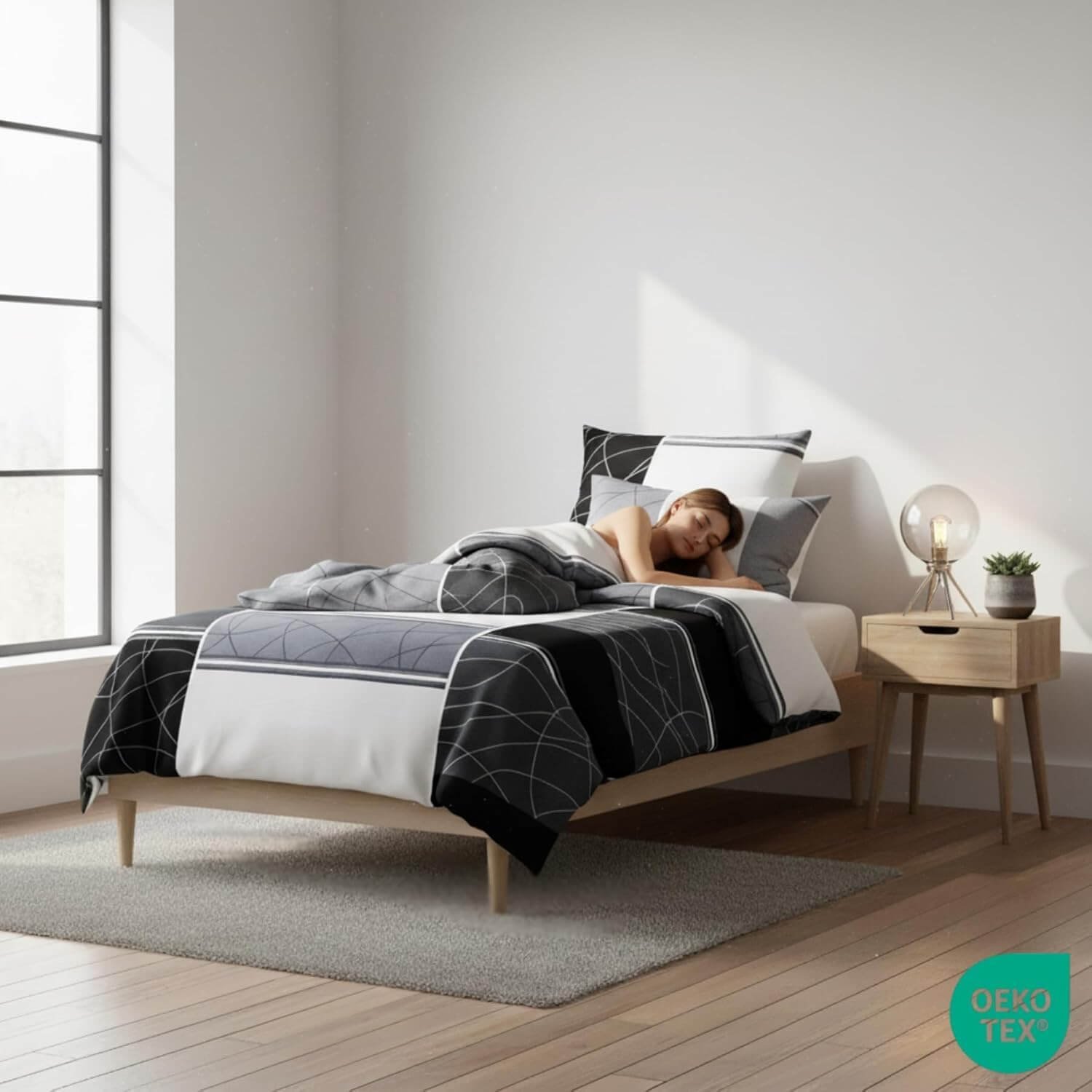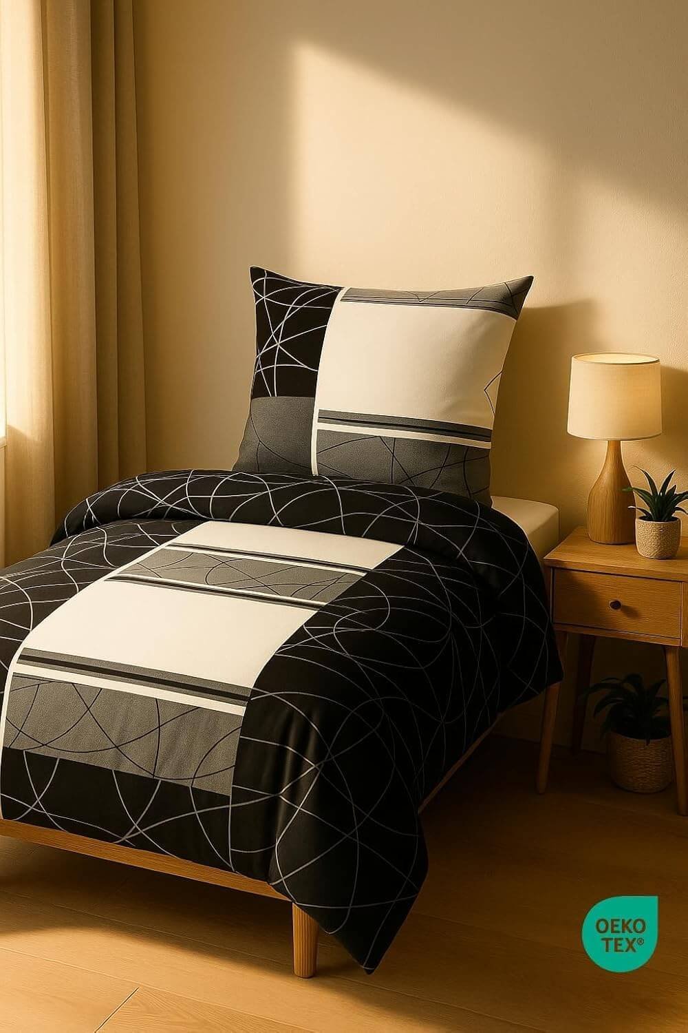 - Öko-Tex geprüft: Das Öko-Tex Standard 100-Label bestätigt, dass die Bettwäsche auf Schadstoffe und Hautverträglichkeit geprüft und gesundheitlich unbedenklich ist.