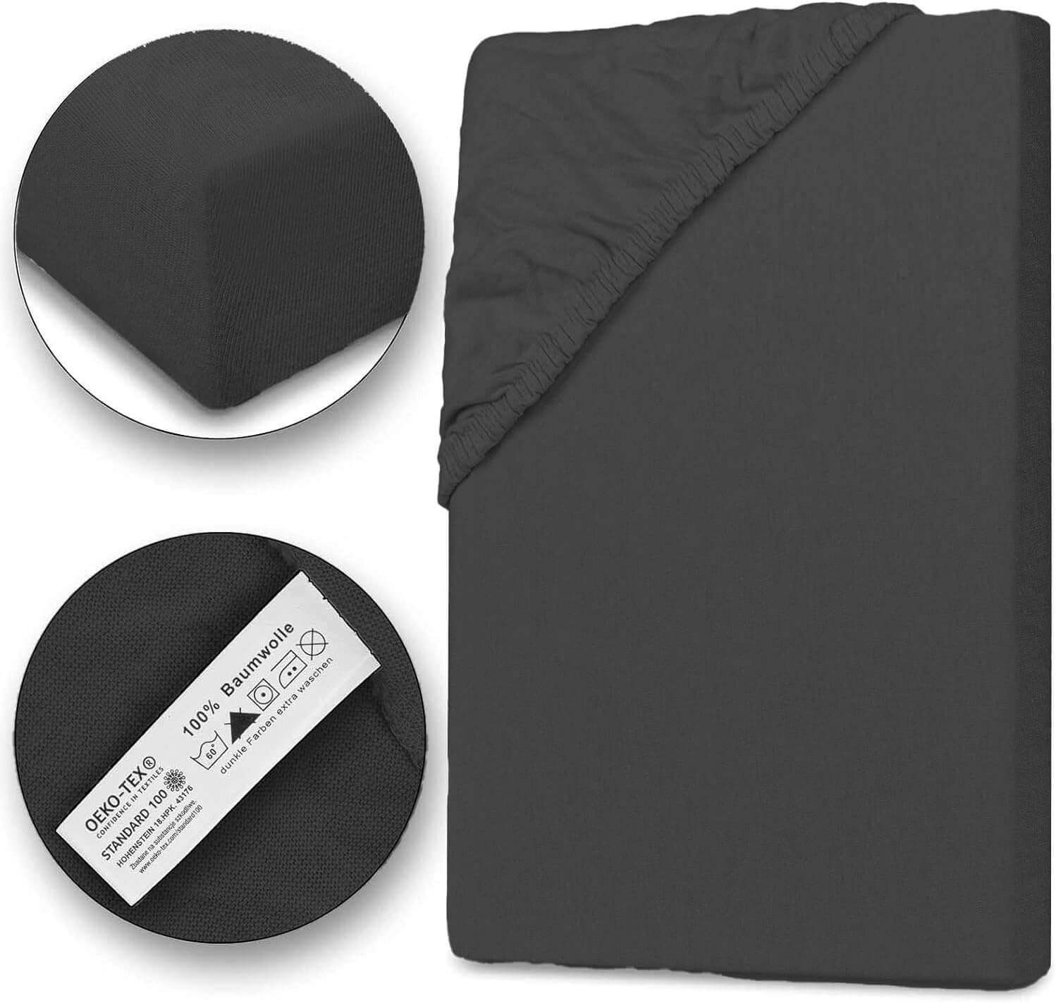 Jersey-Spannbettlaken Baumwolle 140 x 200 cm Anthrazit Öko-Tex Standard 100 Hautfreundliches Spannbettlaken mit Gummizug Pflegeleicht Atmungsaktiv Allergiker geeignet