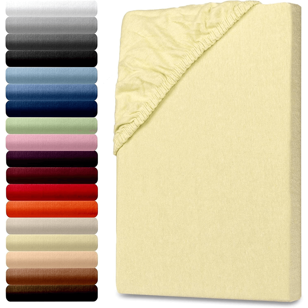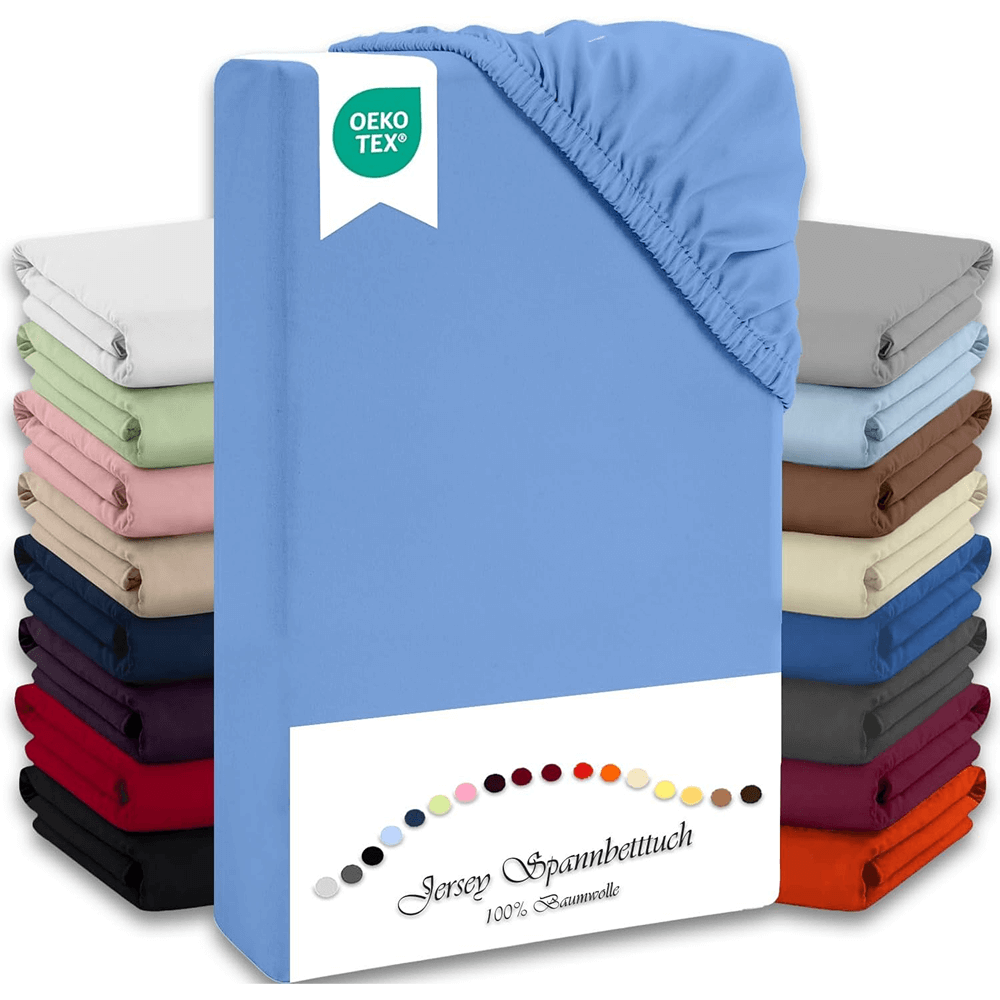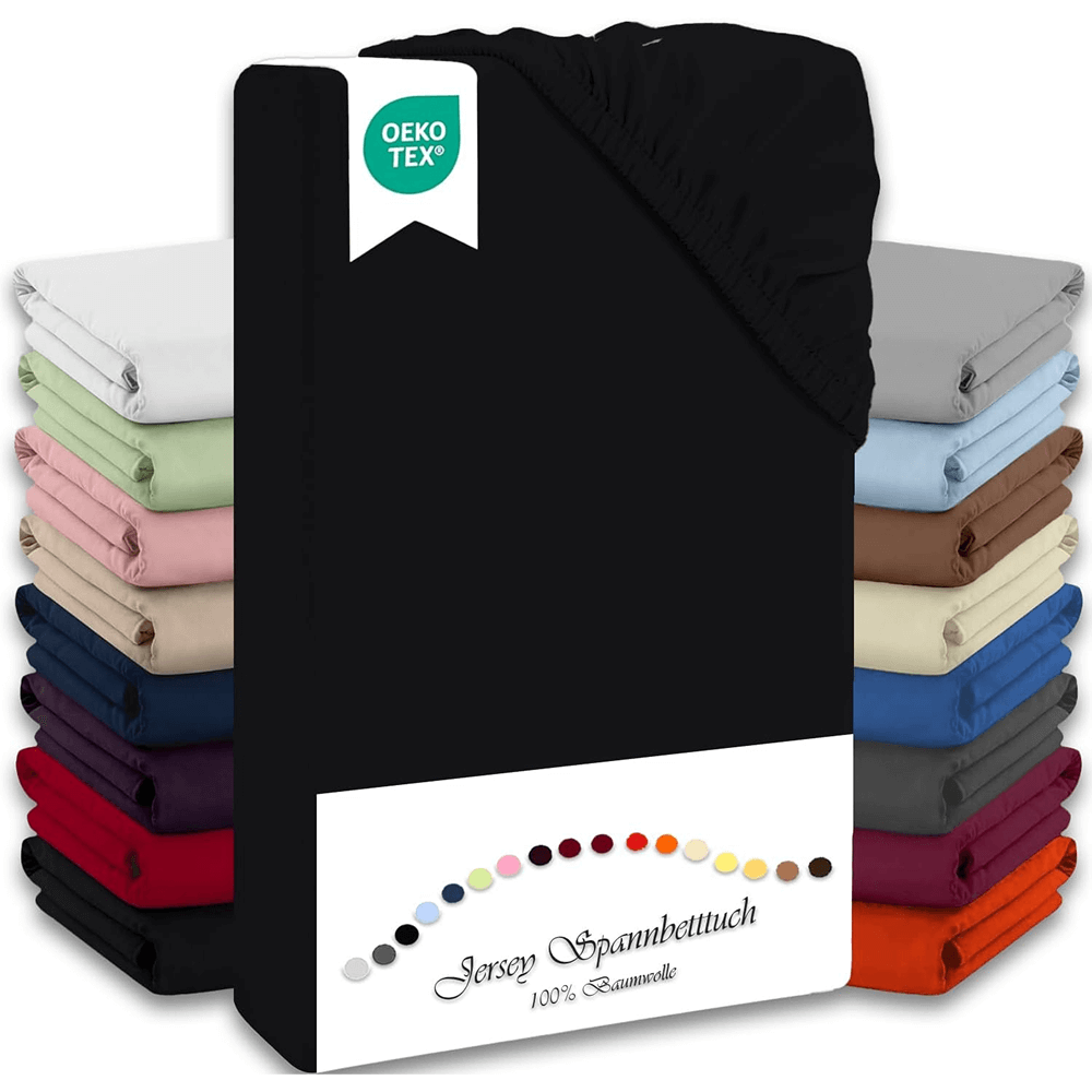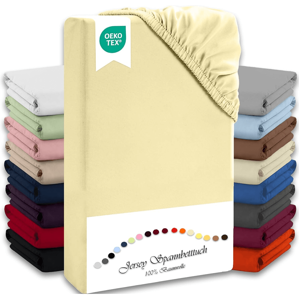 - Spannbettlaken: Erleben Sie ein fließend weiches und kuscheliges Jersey-Spannbettlaken in den Größen 140–160 x 200 cm mit 27 cm Steghöhe. Dank des Gummizugs sitzt es eng und bleibt knitterfrei.