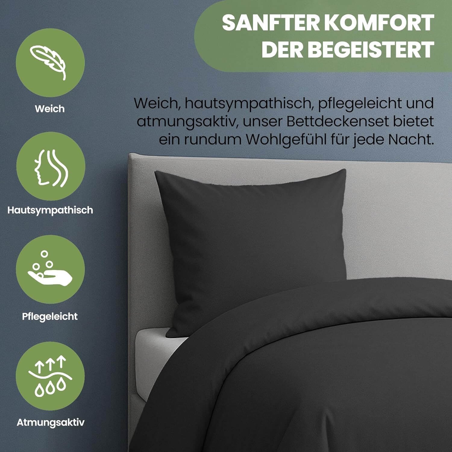 Luxuriöse Mikrofaser-Bettwäsche 135 x 200 cm – mit Reißverschluss – Kissenbezüge 80 x 80 cm – weich, atmungsaktiv & preiswert