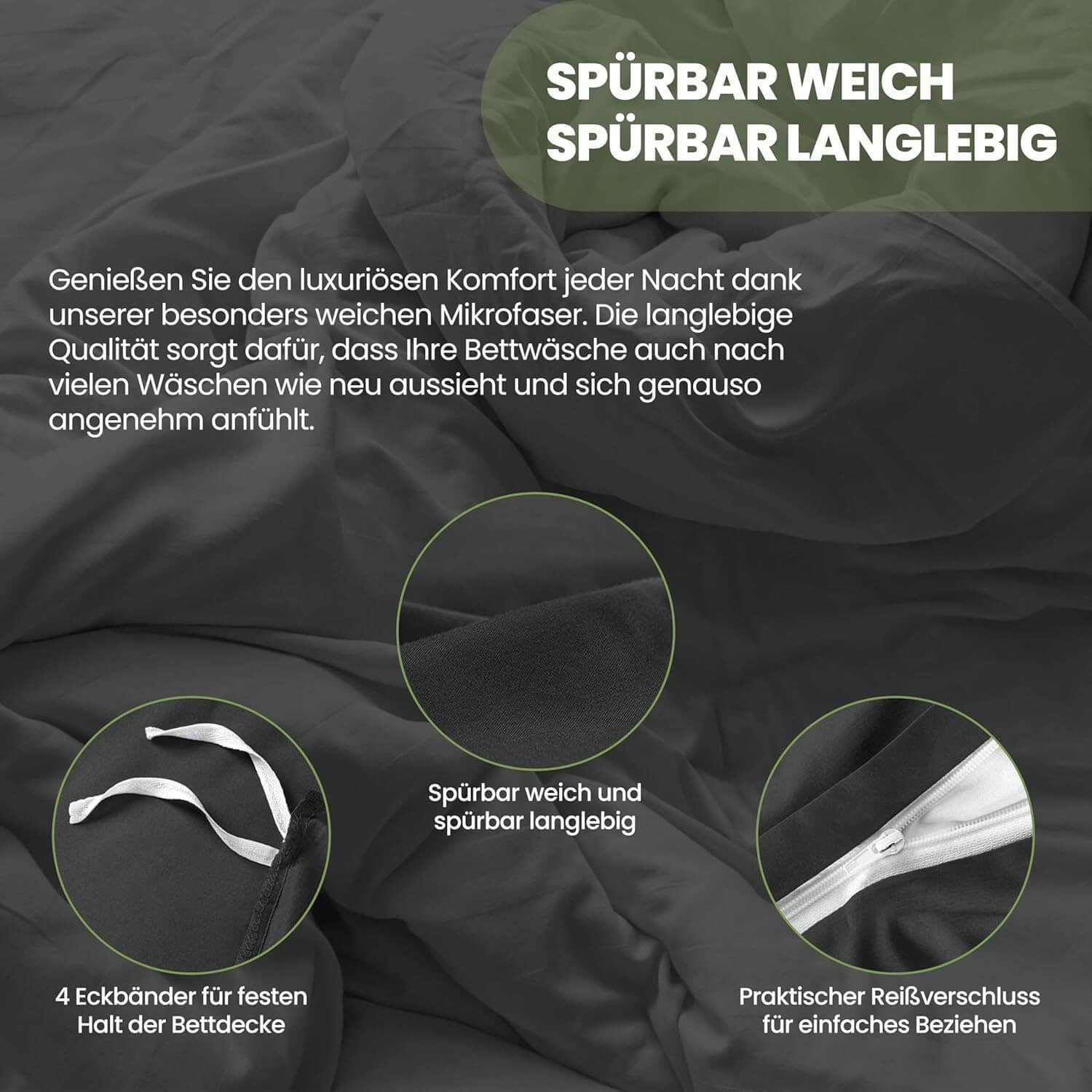 • SICHERER REISSVERSCHLUSS – Der verdeckte, sauber eingenähte Reißverschluss sorgt dafür, dass die Bettdecke sicher an ihrem Platz bleibt – kein Verrutschen oder Herausrutschen mehr.