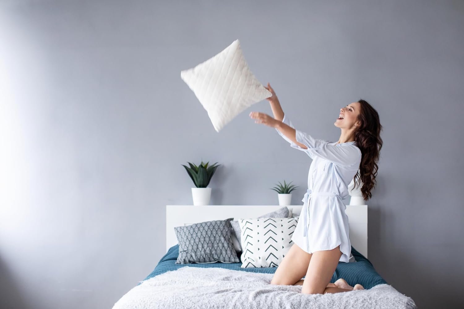 - Zeitloses, elegantes Weiß, das sich harmonisch in fast jede Schlafzimmereinrichtung einfügt – stilvoll, schlicht und vielseitig.