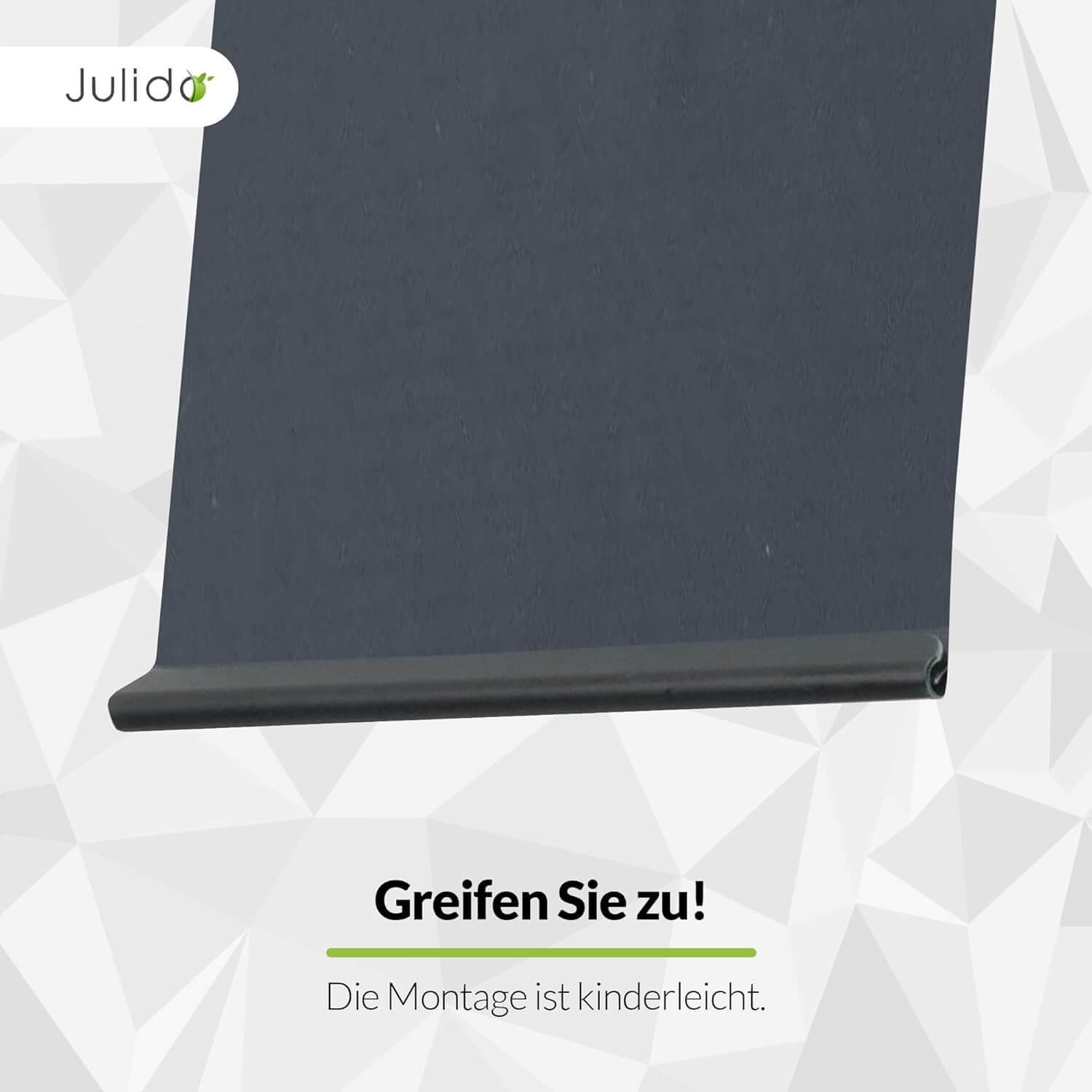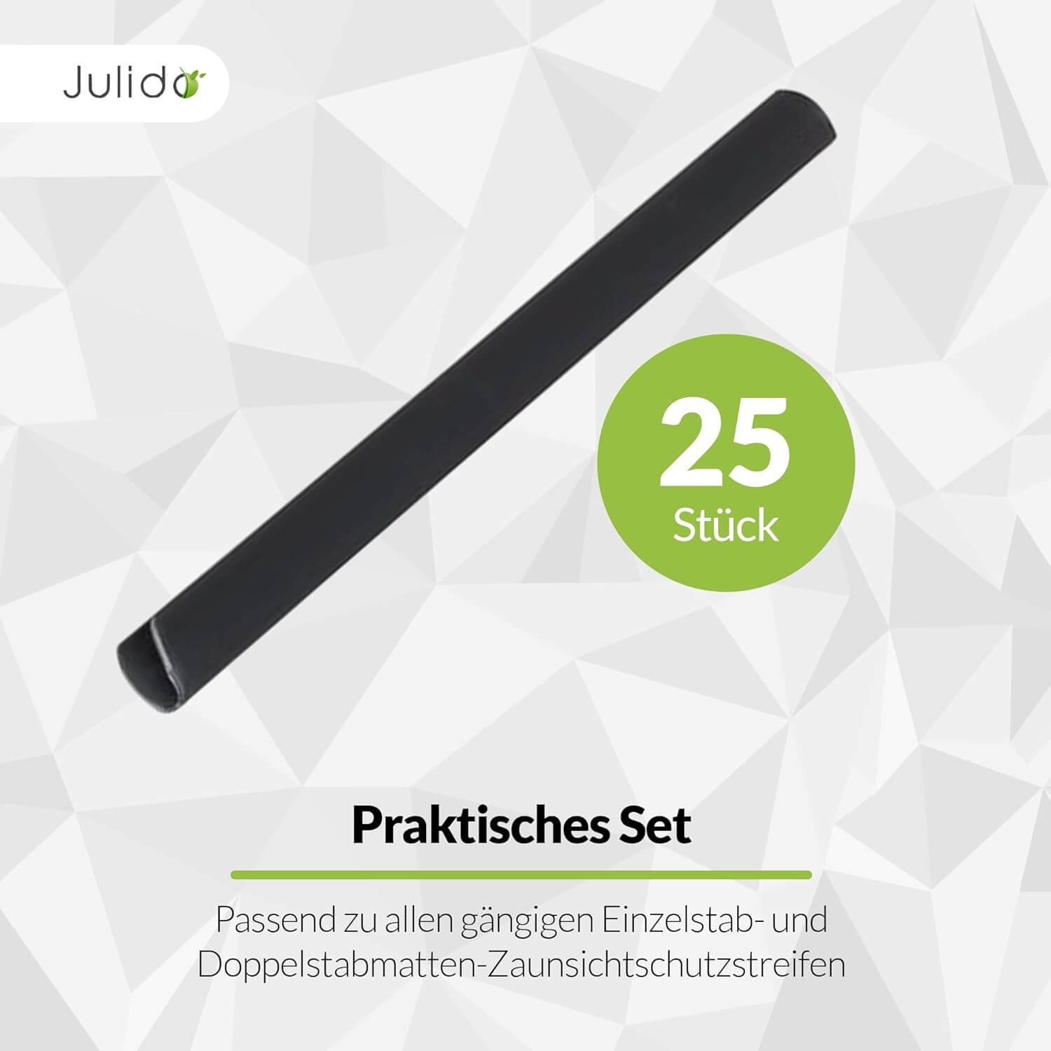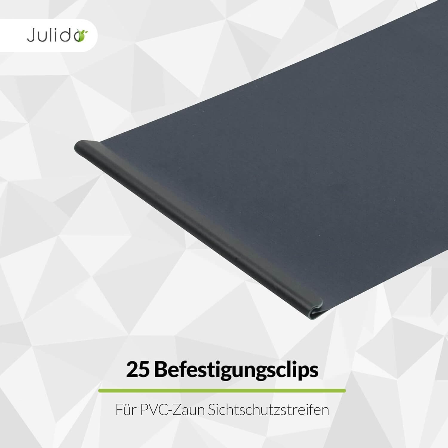 - Einfache Montage: Die Clips werden einfach auf die gefalteten Enden der Sichtschutzstreifen geschoben.